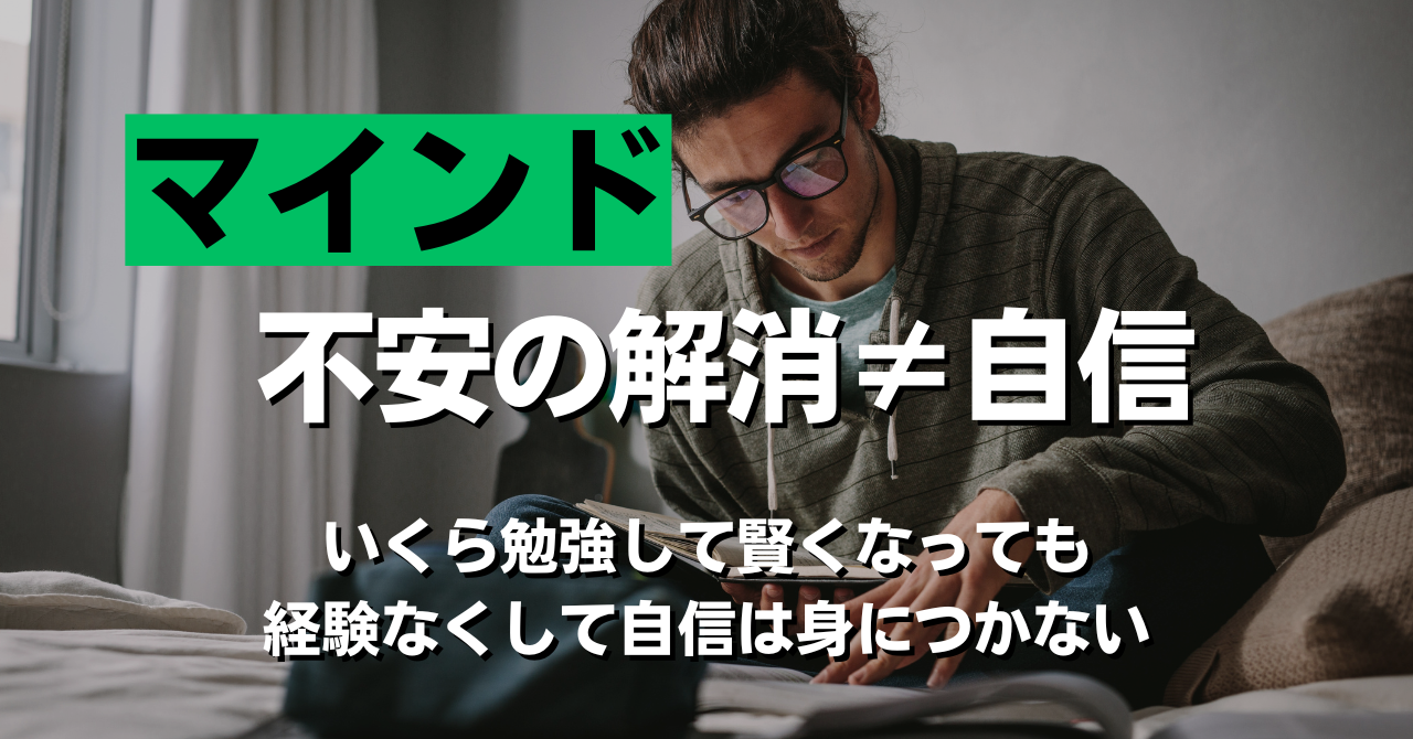 不安の解消という行為はあくまで不安をなくすだけ。どこまでいっても0を超えて自信が身に付くことは決してありません。
